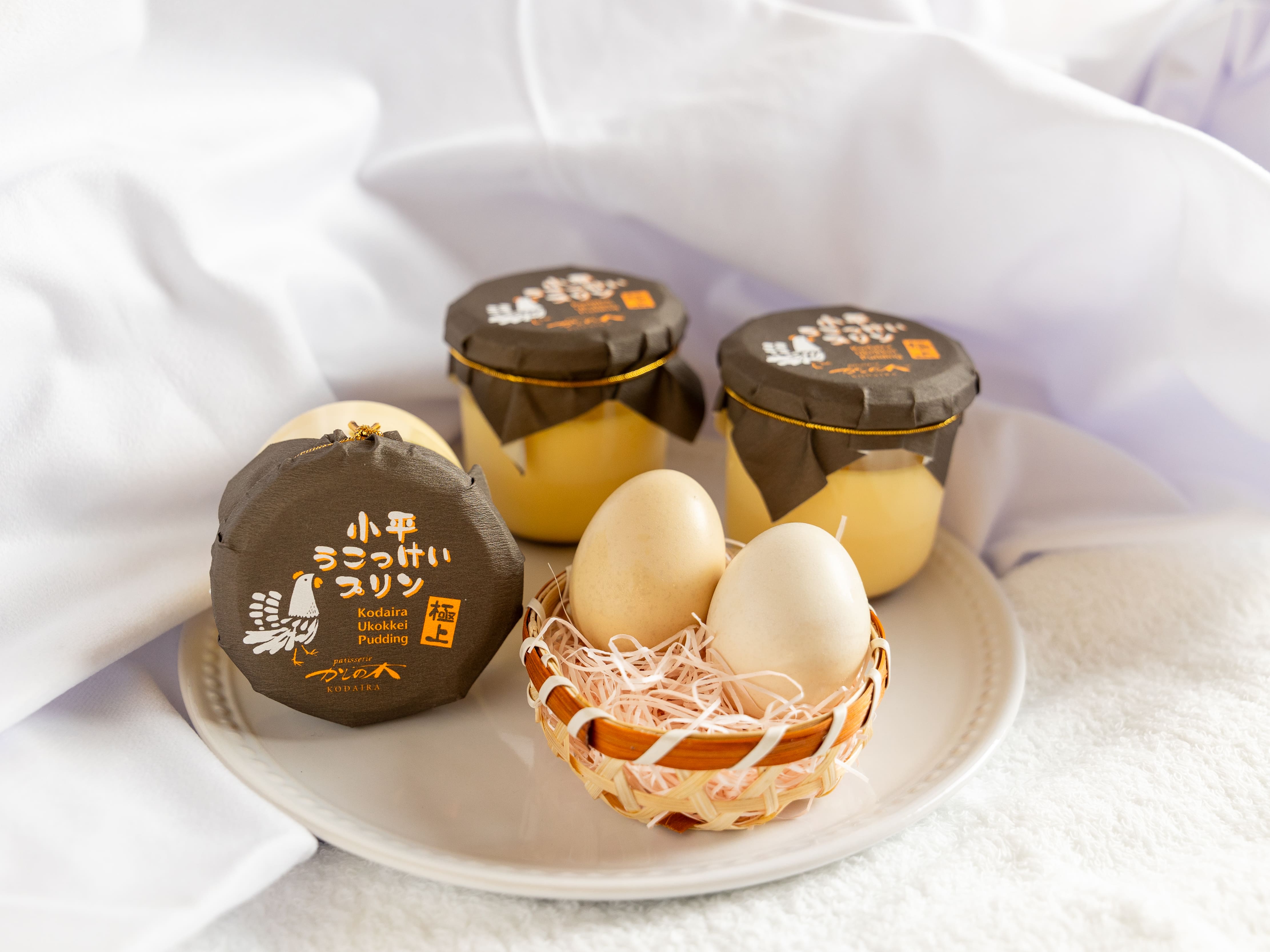 店舗からほど近いの”粕谷園”で飼育されている、烏骨鶏の卵を贅沢に使用したプリン。